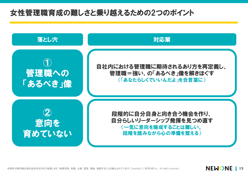 最後に、女性管理職育成における難しさをまとめると、