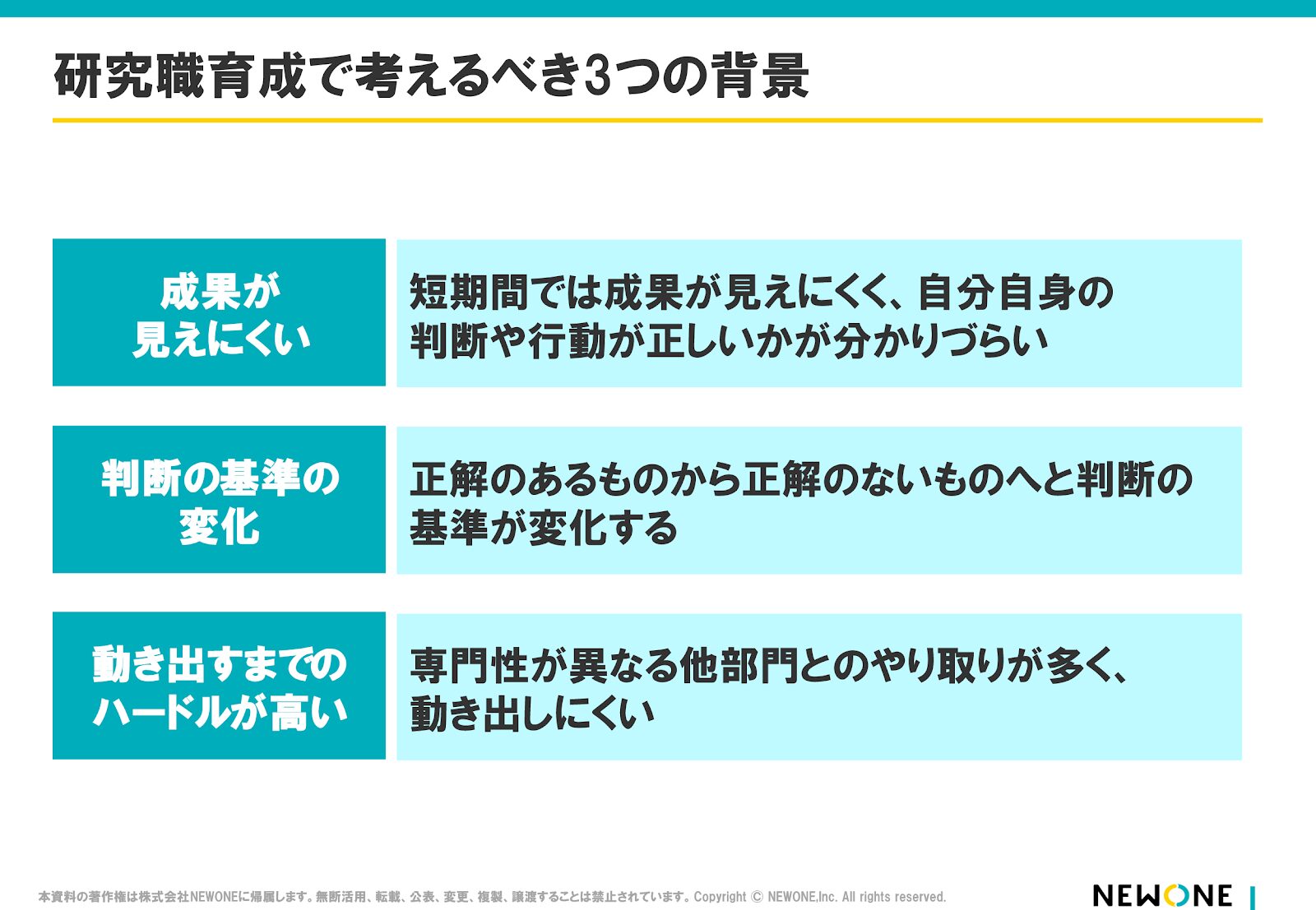 研究職の新入社員育成を考えるうえでは、押さえておきたい背景が大きく3つあります。