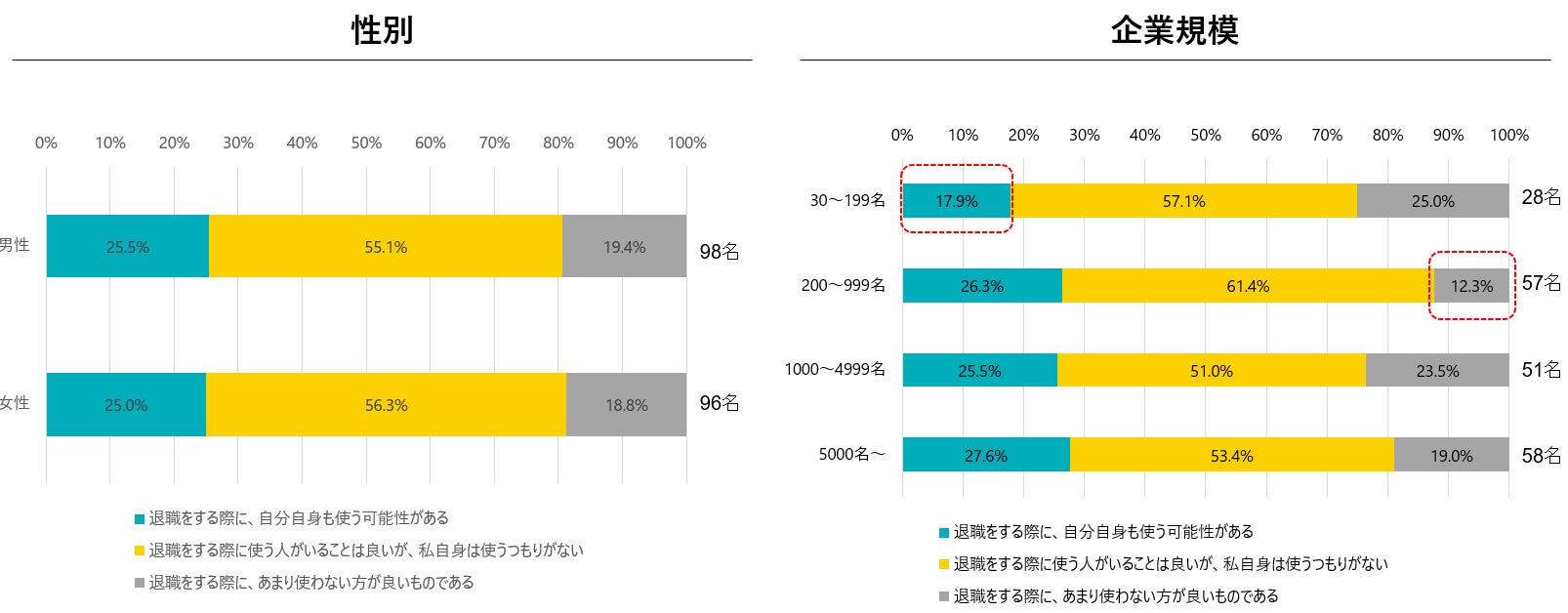 就職先の企業規模で見ると、199名以下は利用可能性が低く、200~999名規模が”使わない方が良い”が一番少ない。