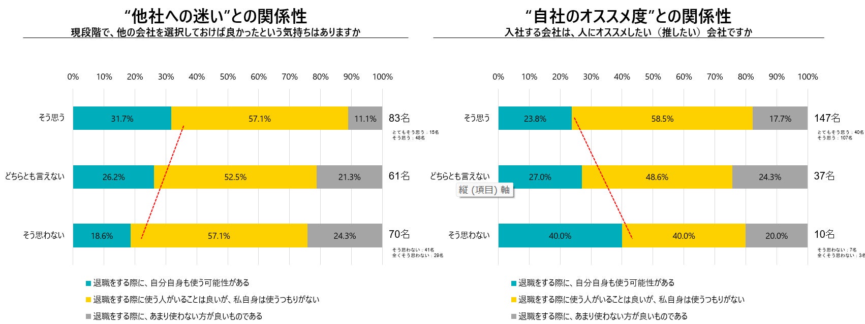 こうした結果から、新卒の内定承諾時期や選考後の感情が、退職代行の利用意向に大きく関与していることがわかりました。