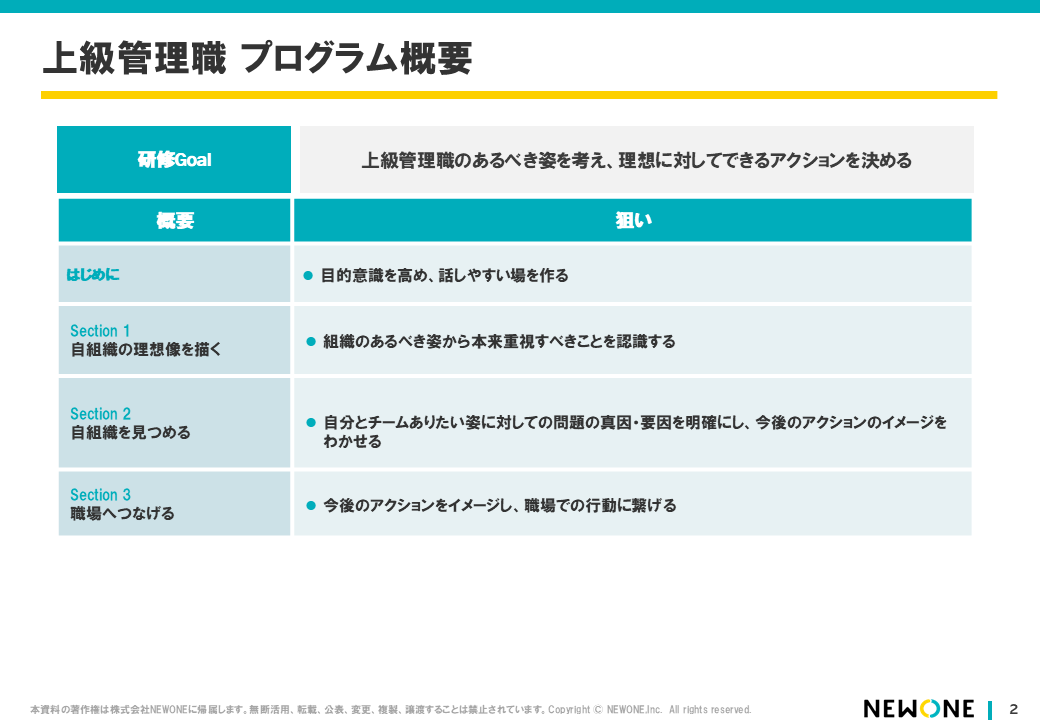 ・普段使わないものの考え方に触れることができ、上級管理職としての役割や思考を学び、今後のマネジメントへ活かせると感じました。