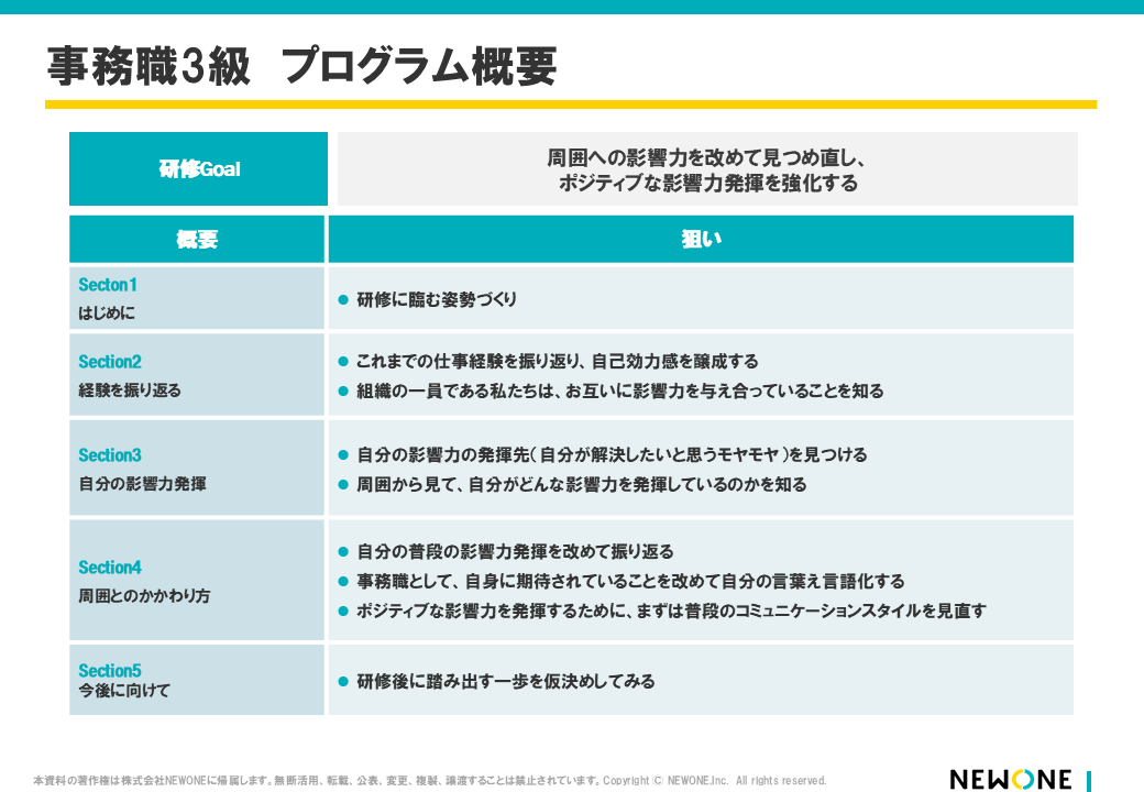 樋口様:きっかけは、NEWONEさんが担っていた当社グループ会社の事務職研修を見学させていただいたことでした。内容がとても良いと感じたことから、「当社でも事務職研修を実施したい」と思い、ご相談させていただきました。