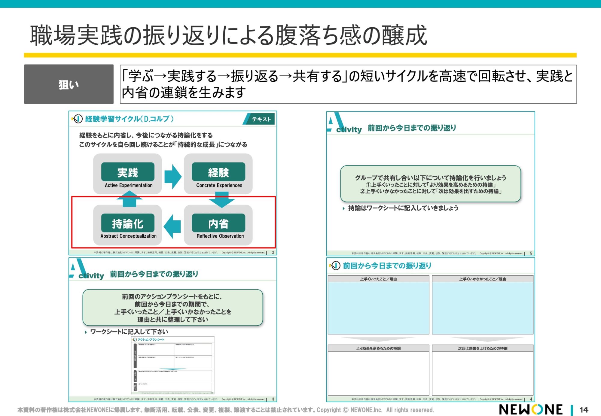 「学ぶ→実践する→振り返る→共有する」の短いサイクルを高速で回転させ、実践と内省の連鎖を生み出します。