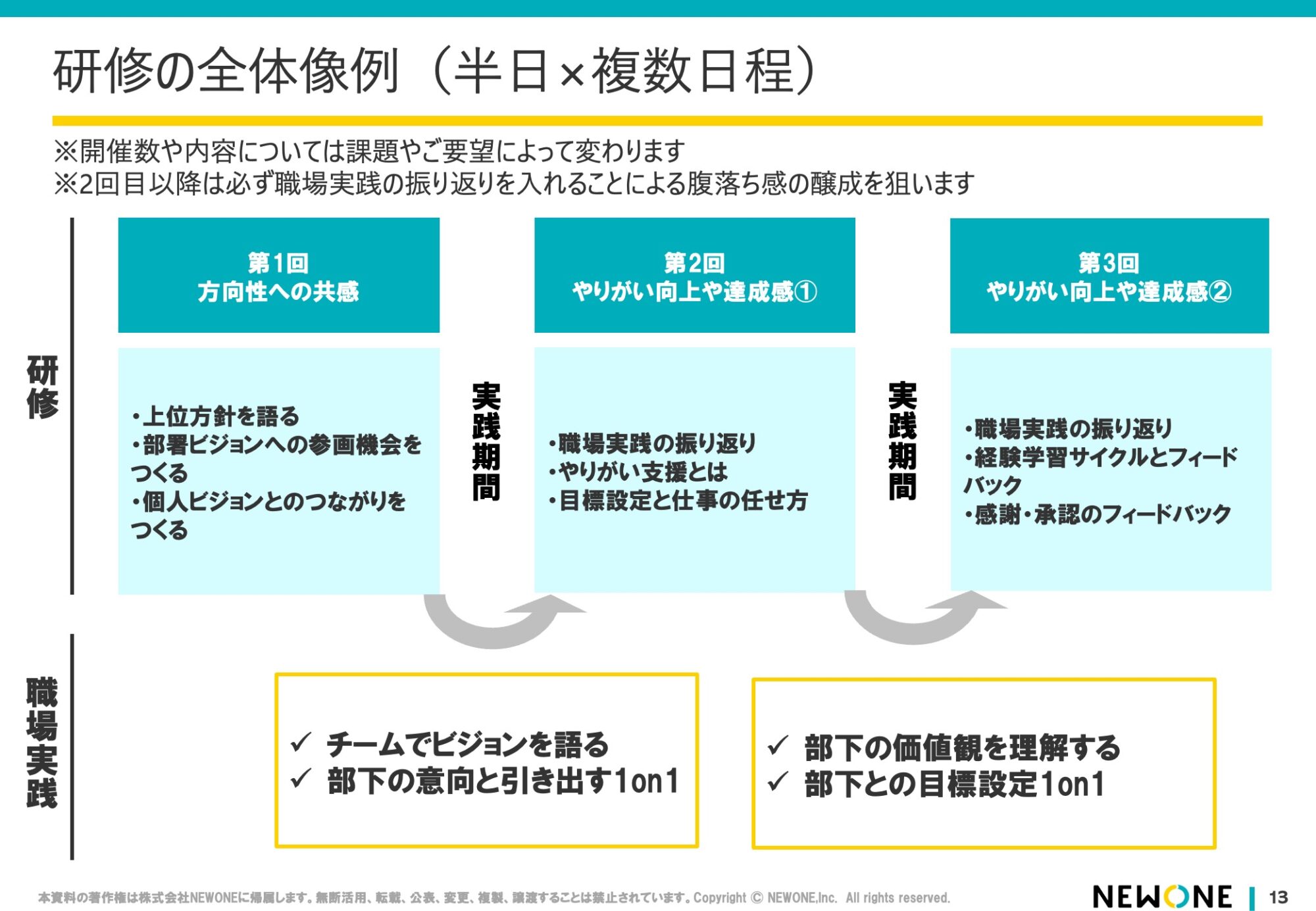 可能です。 NEWONEの研修プログラムは、 企業様のご状況・ご要望に合わせてカスタマイズし、ご参加者の行動変化が促進されるような 最も効果的な形でご提供させて頂いております。